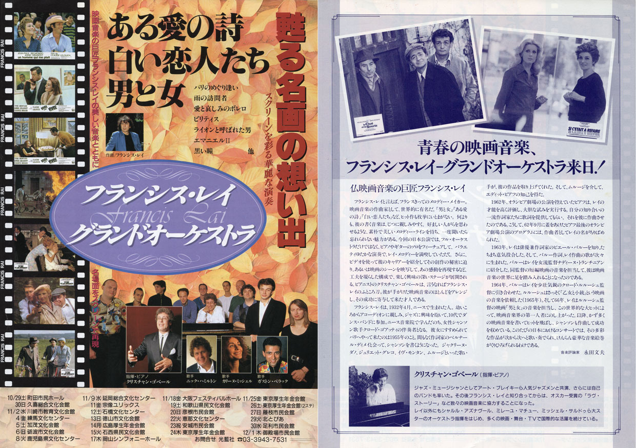 1994年に光藍社の招聘で公演をおこなった際に指揮をしたクリスチャン・ゴベールは「パリのめぐり逢い」「白い恋人たち」「あの愛をふたたび」「ある愛の詩」など、サウンドトラック盤オーケストレーションをおこなった人です。